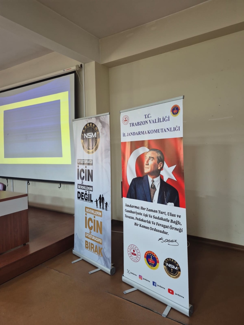 İl Jandarma Komutanlığının işbirliğiyle, Trabzon Üniversitesi Bağımlılıkla Mücadele Koordinatörlüğünden Dr. Öğr. Üyesi Fatma Dilek ŞEKER tarafından 'Bağımlılıkla Mücadele' konulu konferansı gerçekleşmiştir. Kendilerine değerli sunumları için teşekkürlerimizi iletiriz.